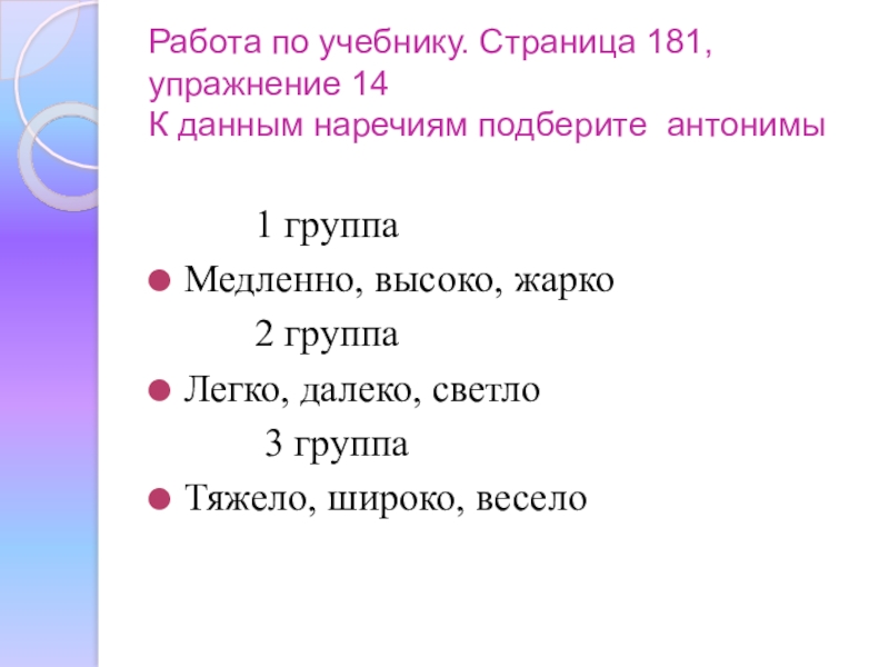 Слайд 22Работа по учебнику. Страница 181,упражнение 14