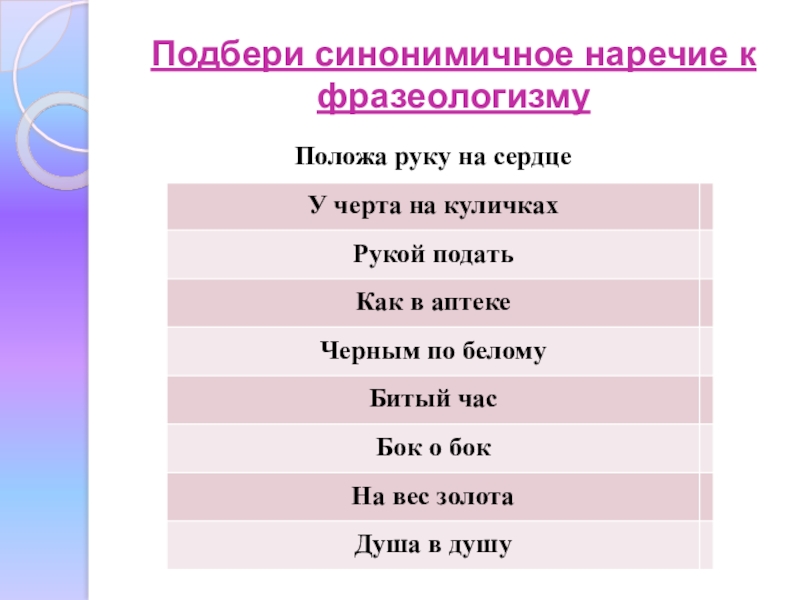 Слайд 24Подбери синонимичное наречие к фразеологизму