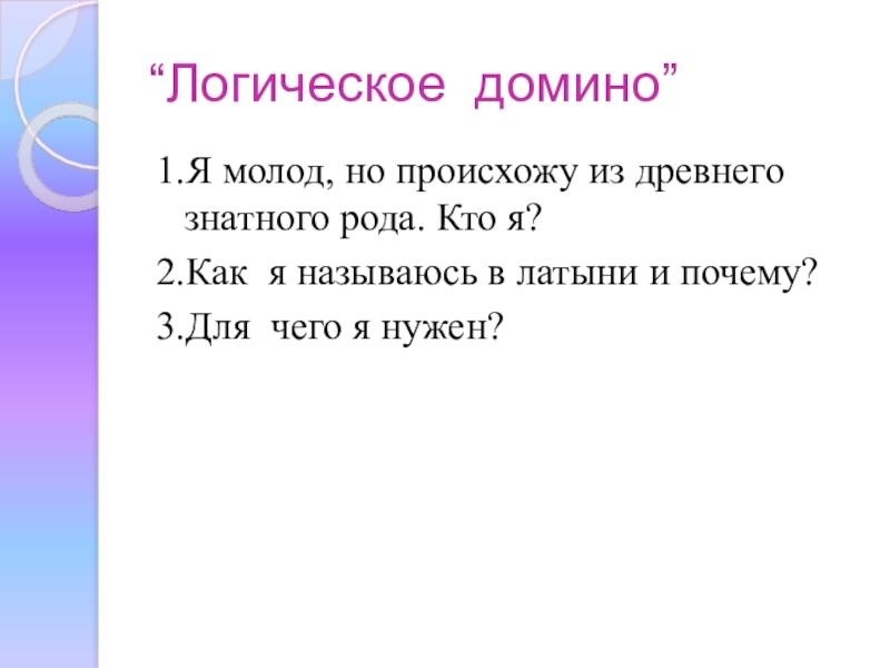 1.Я молод, но происхожу из древнего знатного рода. Кто я?