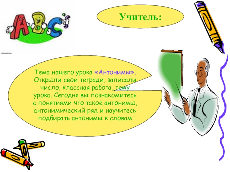 Итак, мы с вами будем проходить новую тему «Антонимы».