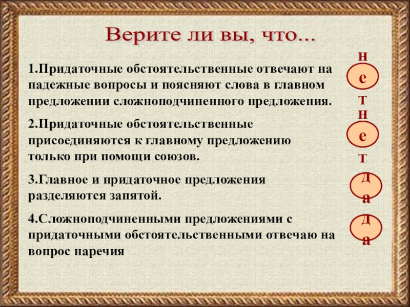 СПП с придаточными обстоятельственными