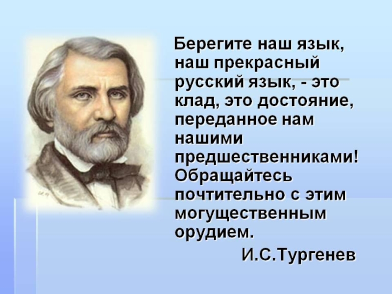 — ты один мне поддержка и опора, о великий, могучий, правдивый и свободный русский язык!
