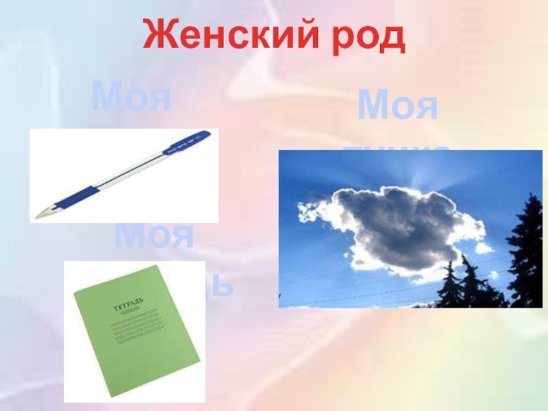 Женский род Моя ручкаМоя тучкаМоя тетрадь