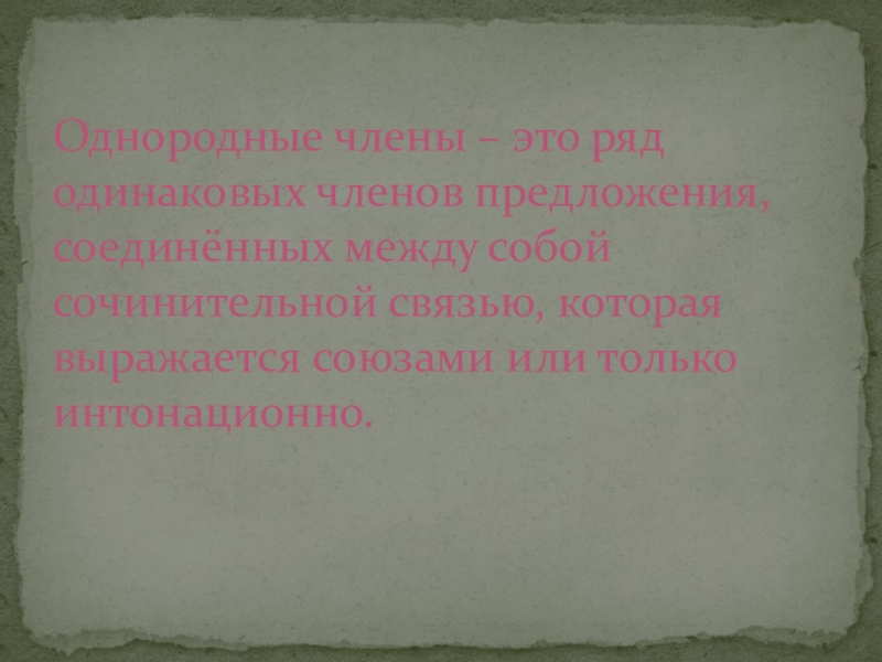Слайд 2Однородные члены – это ряд одинаковых членов предложения, соединённых между собой