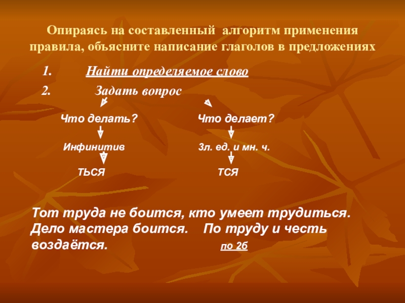 Тот труда не боится, кто умеет трудиться. Дело мастера боится. По труду и честь воздаётся. по 2б