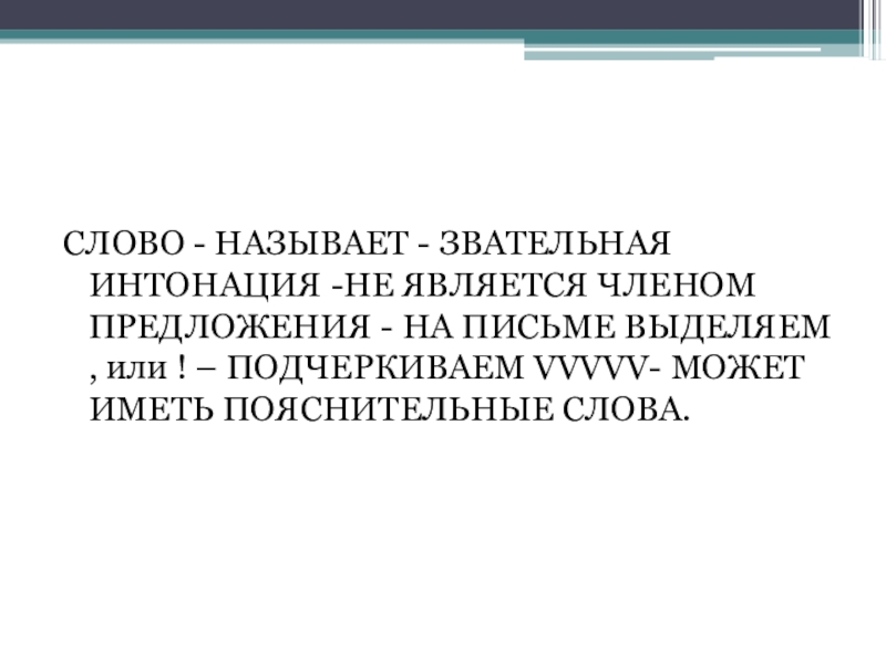 СЛОВО - НАЗЫВАЕТ - ЗВАТЕЛЬНАЯ ИНТОНАЦИЯ -НЕ ЯВЛЯЕТСЯ ЧЛЕНОМ ПРЕДЛОЖЕНИЯ -