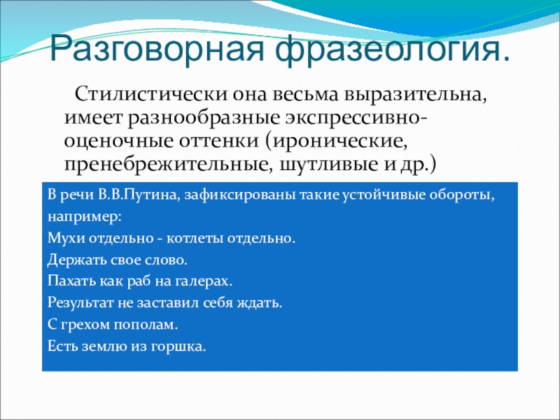 В речи В.В.Путина, зафиксированы такие устойчивые обороты,