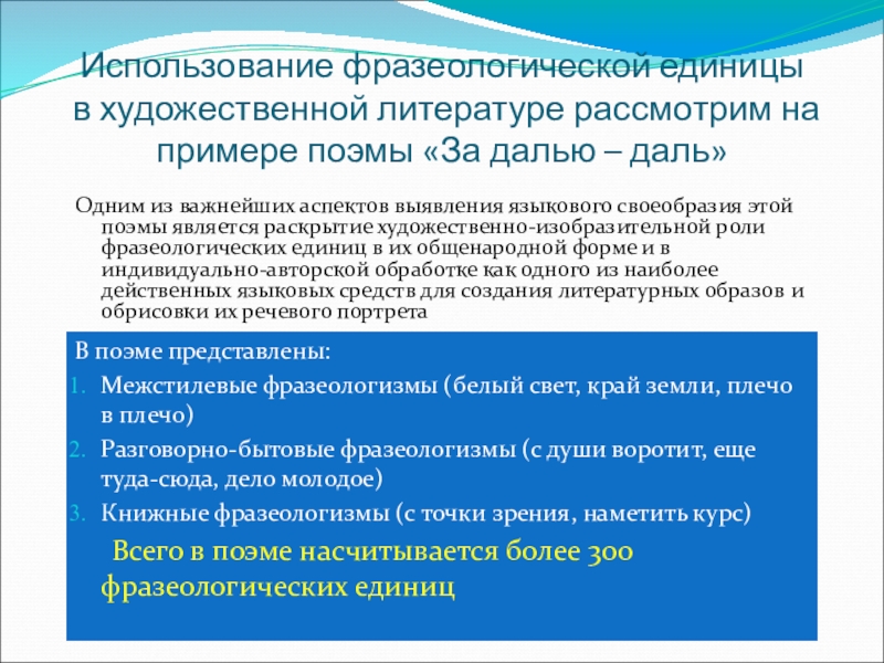 Всего в поэме насчитывается более 300 фразеологических единиц