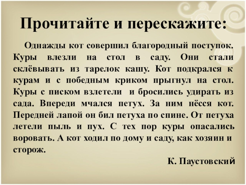 Прочитайте и перескажите: