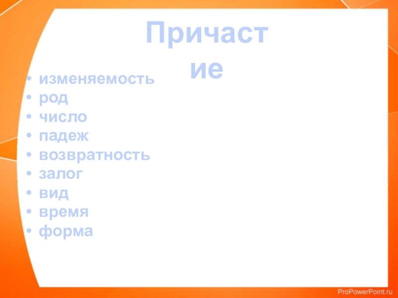 изменяемостьродчислопадежвозвратностьзалогвидвремяформаПричастие
