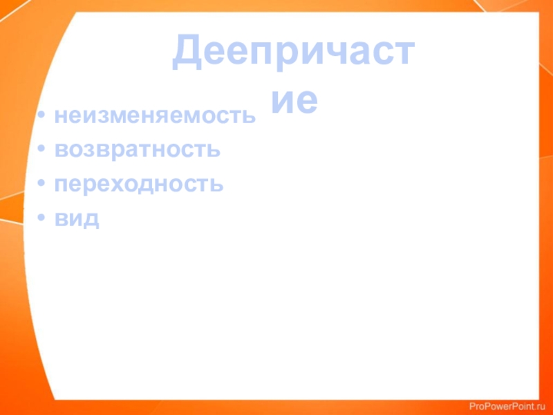 неизменяемостьвозвратностьпереходностьвидДеепричастие