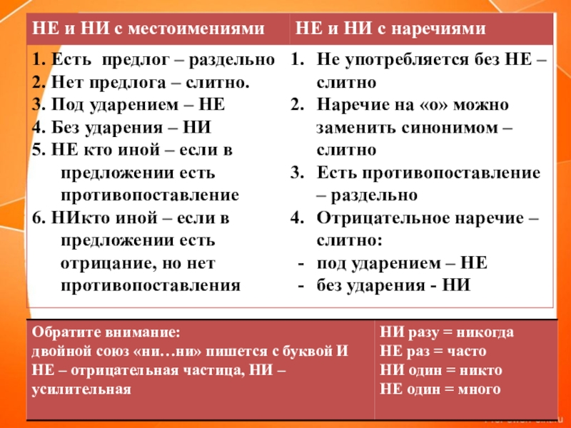 Слитное и раздельное написание НЕ и НИ с разными частями речи
