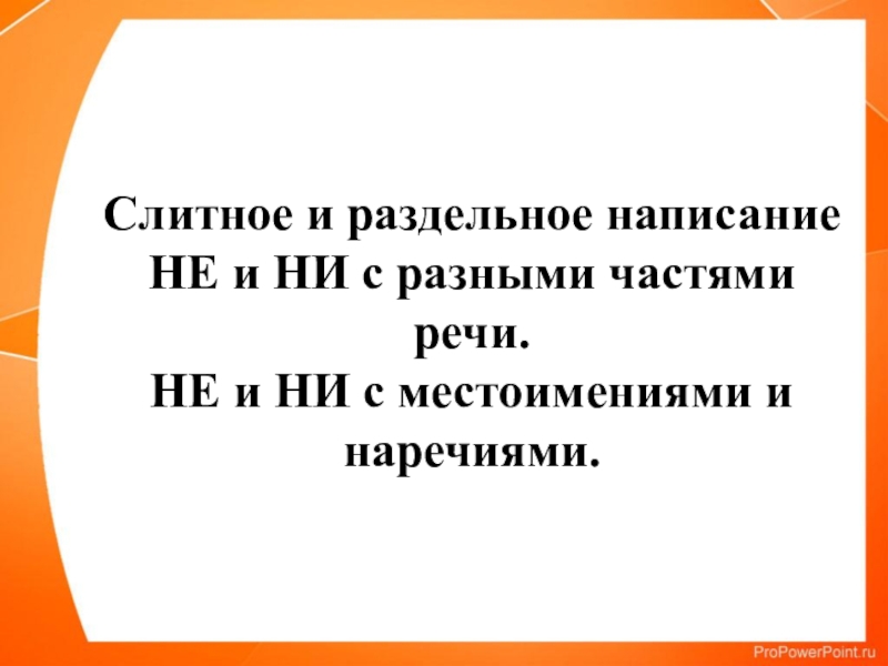 Презентация, доклад по русскому языку на тему Слитное и раздельное написание НЕ и НИ с разными частями речи (2 часа) (8 класс)