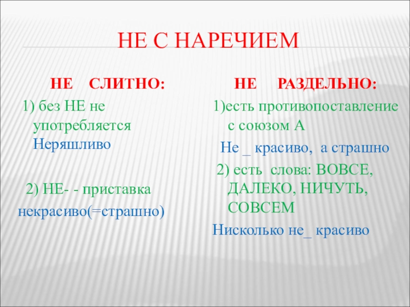 2) есть слова: ВОВСЕ, ДАЛЕКО, НИЧУТЬ, СОВСЕМ
