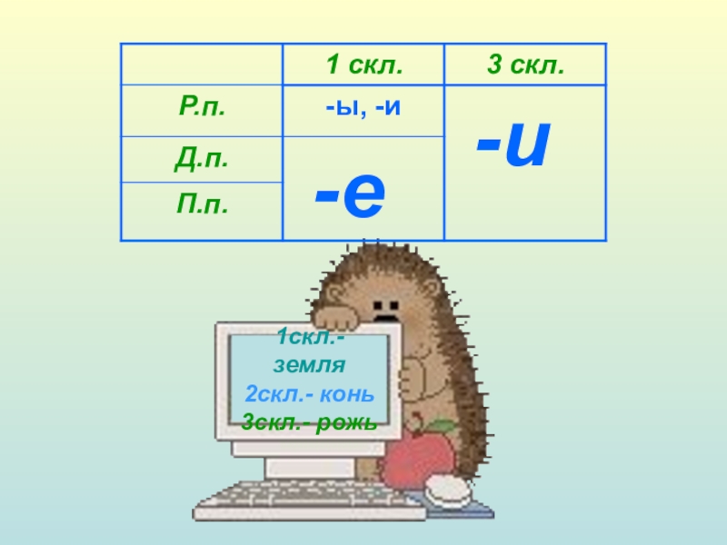 Склонение имён существительных1 склонение3 склонение2 склонениелисадеревокотлошадь дядяполерожь