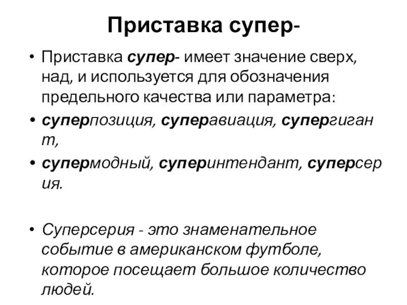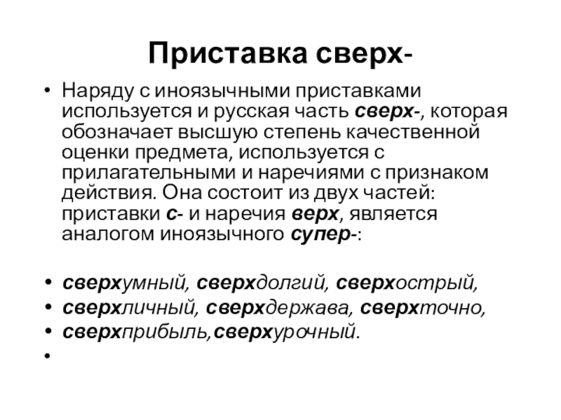 Наряду с иноязычными приставками используется и русская часть сверх-, которая обозначает