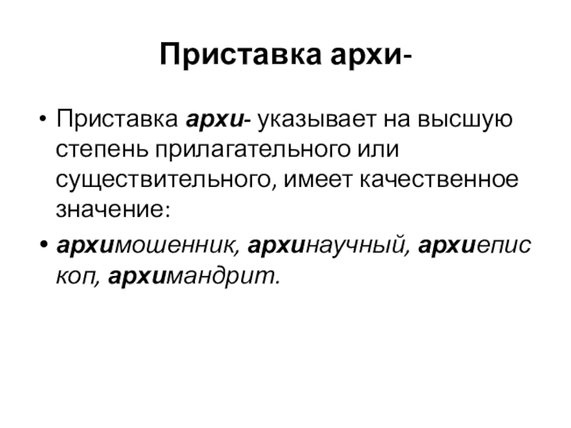 Приставка архи- указывает на высшую степень прилагательного или существительного, имеет качественное значение: