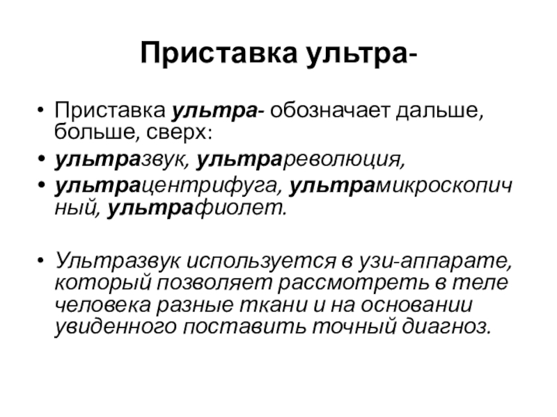 ультрацентрифуга, ультрамикроскопичный, ультрафиолет.