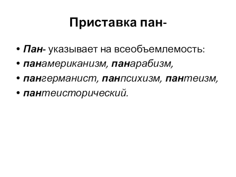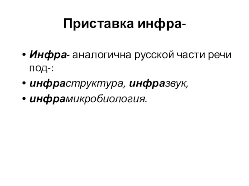 Часто употребляются следующие иностранные приставки: экстра-, экс-, ультра-, транс-, супер-, суб-, прото-, пост-, пан-, контр-, инфра-, интер-, дис-, диз-, дез-, де-, гипо-, гипер-, архи-, анти-, а-.