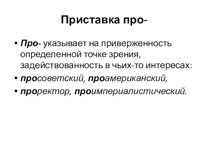 Про- указывает на приверженность определенной точке зрения, задействованность в чьих-то интересах: