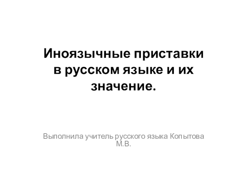 и объединением с новыми территориями во времена Киевской Руси, Российской Империи, Советского Союза и т.д. В результате иностранных заимствований наряду с другими словами к нам попали иностранные приставки, имеющие свое значение. Иноязычные приставки в русском языке встречаются так же часто, как и части русского происхождения. Чаще всего они происходят от греческого языка или латыни.