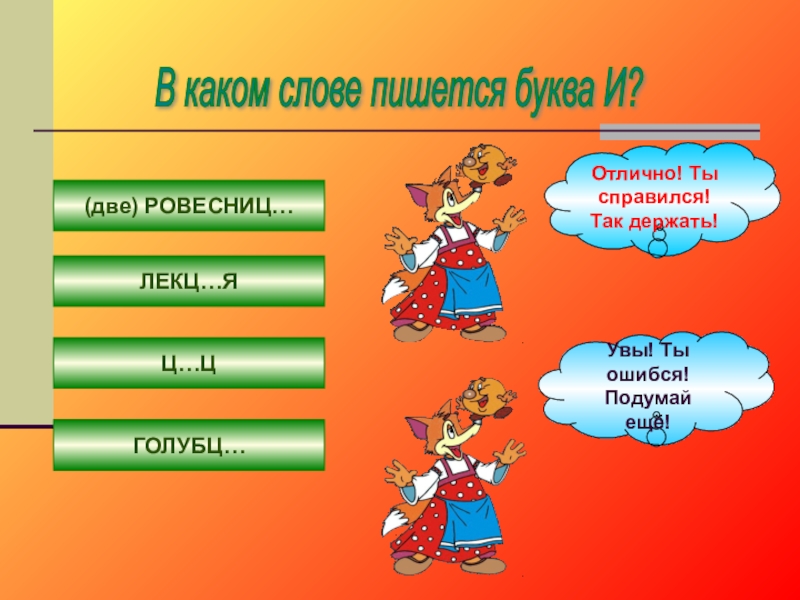 Увы! Ты ошибся! Подумай ещё!