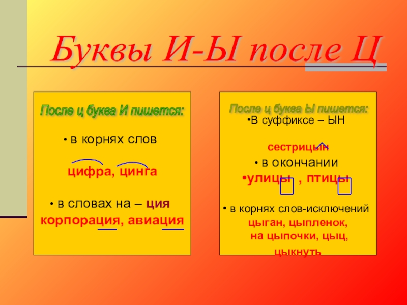 После ц буква Ы пишется: