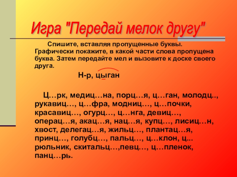 Игра "Передай мелок другу"