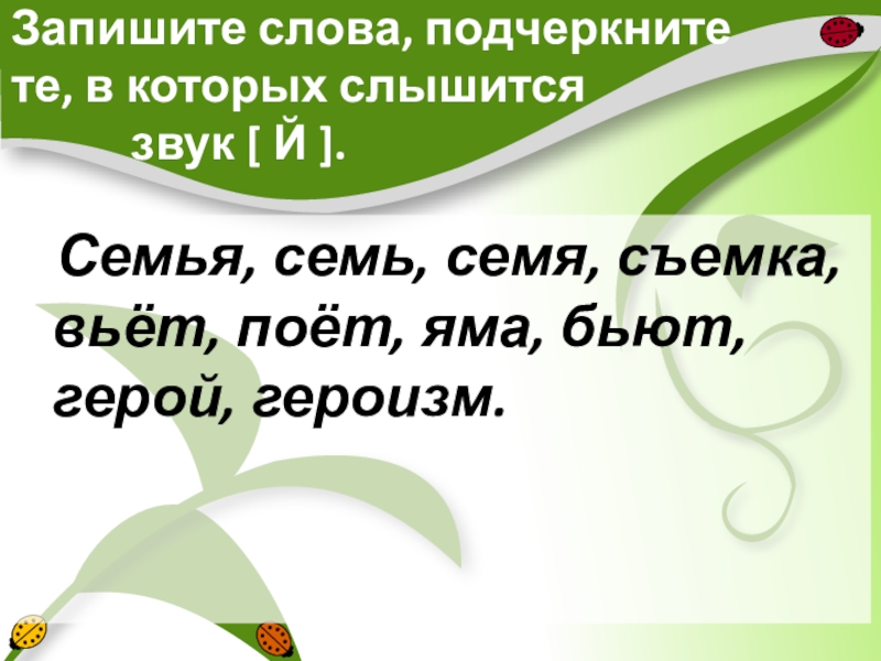 Семья, семь, семя, съемка, вьёт, поёт, яма, бьют, герой, героизм.