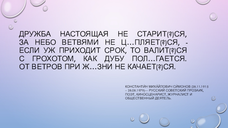 Константи́н Миха́йлович Си́монов (28.11.1915 – 28.08.1979)— русский советский прозаик, поэт, киносценарист, журналист и общественный деятель.