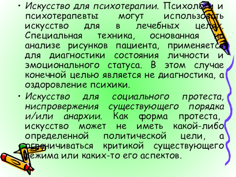 Слайд 16Искусство для психотерапии. Психологи и психотерапевты могут использовать искусство для в