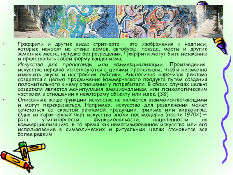 Слайд 17Граффити и другие виды стрит-арта — это изображения и надписи, которые наносят