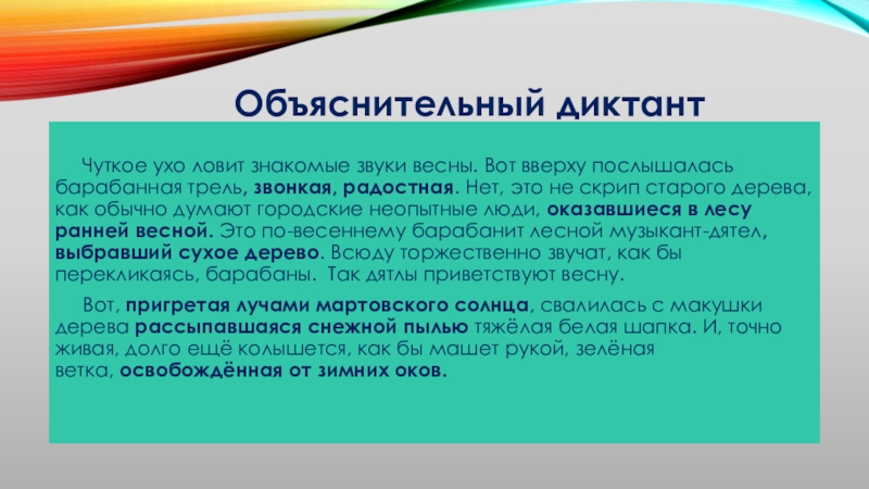 Чуткое ухо ловит знакомые звуки весны. Вот