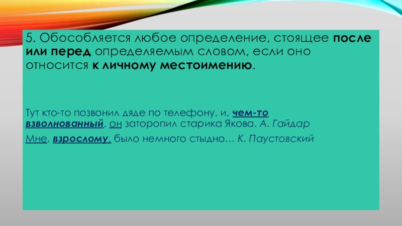 Слайд 95. Обособляется любое определение, стоящее после или перед определяемым словом, если оно относится к