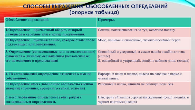 они выражены причастным оборотом или прилагательным с зависимыми словами: