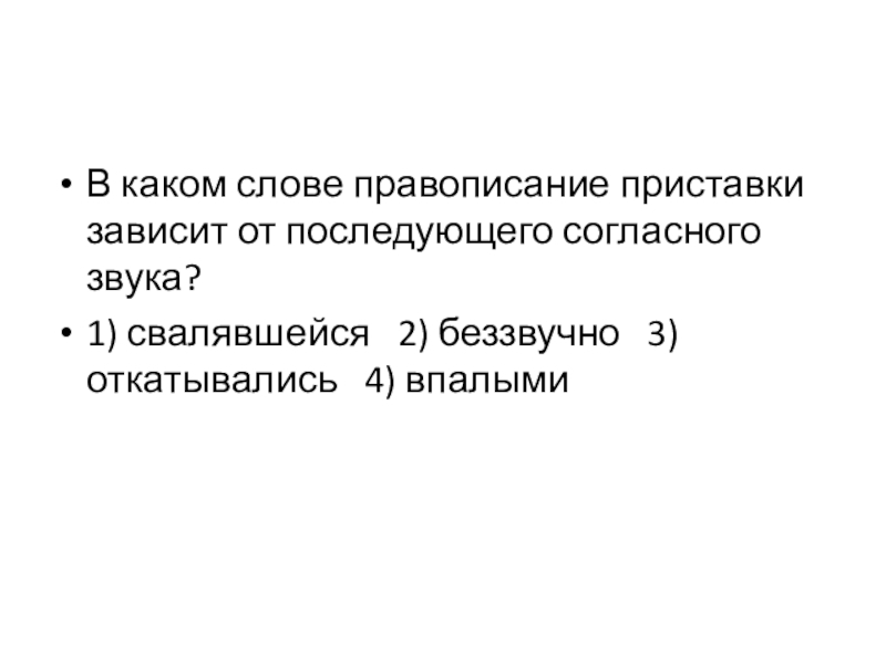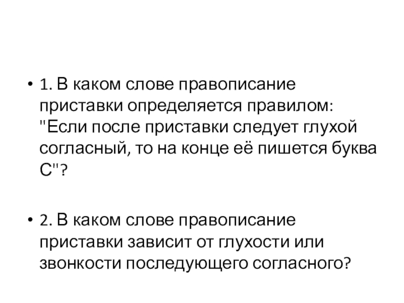 2. В каком слове правописание приставки зависит от глухости или звонкости последующего согласного?