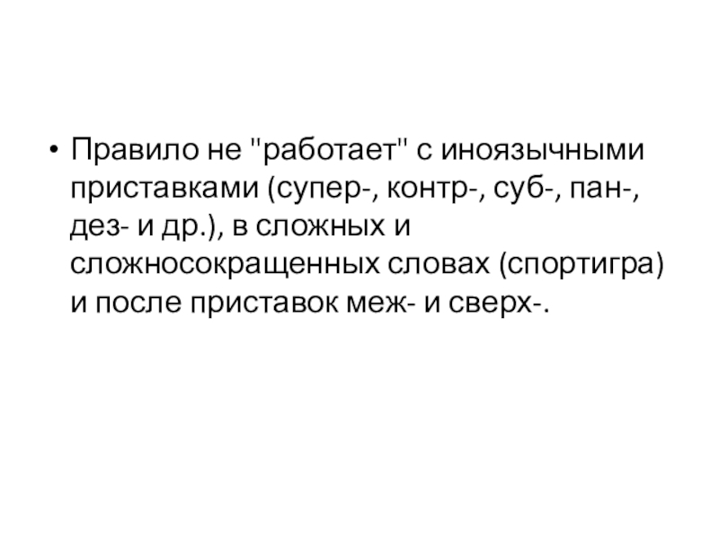 Правило не "работает" с иноязычными приставками (супер-, контр-, суб-, пан-, дез-