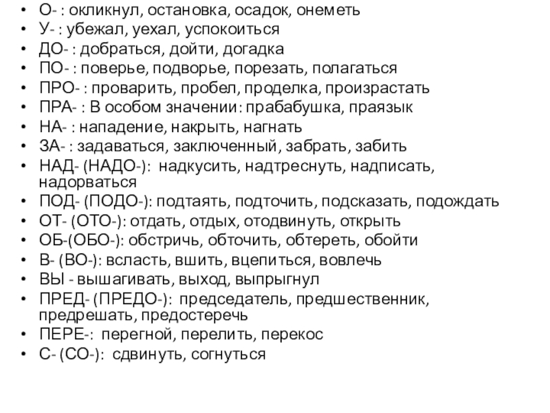 Слайд 19О- : окликнул, остановка, осадок, онеметь