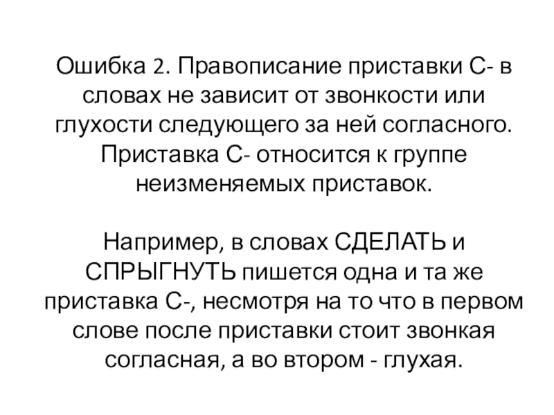 Слайд 9Ошибка 2. Правописание приставки С- в словах не зависит от звонкости