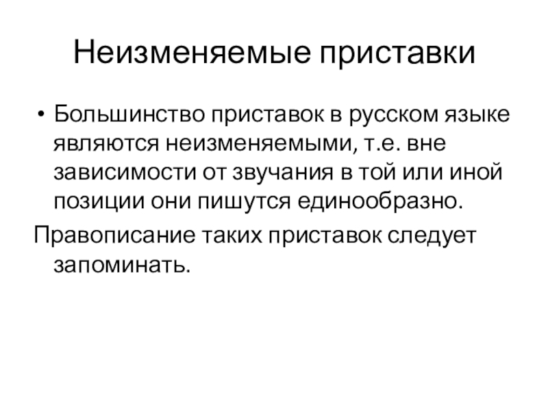 Большинство приставок в русском языке являются неизменяемыми, т.е. вне зависимости