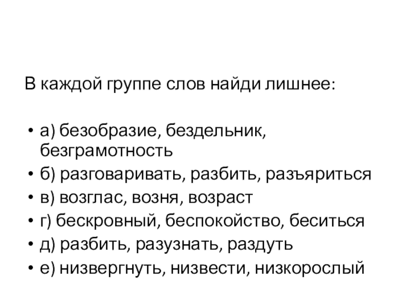 В каждой группе слов найди лишнее: