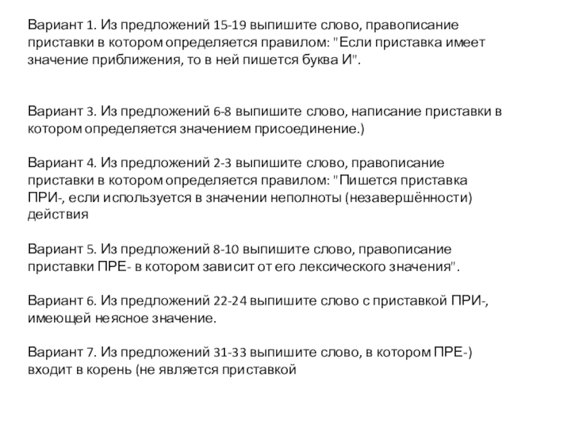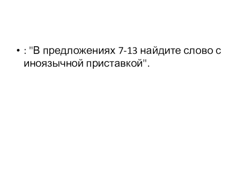 : "В предложениях 7-13 найдите слово с иноязычной приставкой".