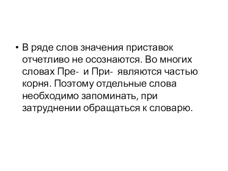 В ряде слов значения приставок отчетливо не осознаются. Во многих словах