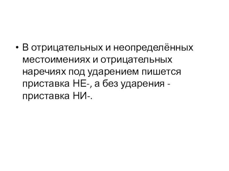 В отрицательных и неопределённых местоимениях и отрицательных наречиях под ударением пишется