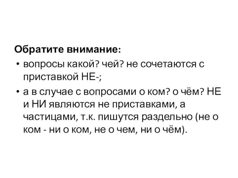 вопросы какой? чей? не сочетаются с приставкой НЕ-;
