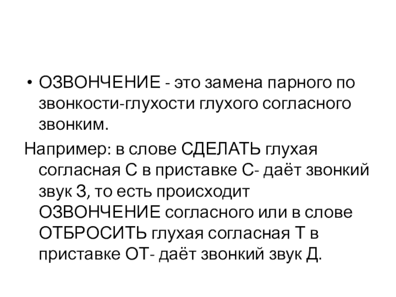 Например, в словах СДЕЛАТЬ и СПРЫГНУТЬ пишется одна и та же приставка С-, несмотря на то что в первом слове после приставки стоит звонкая согласная, а во втором - глухая.