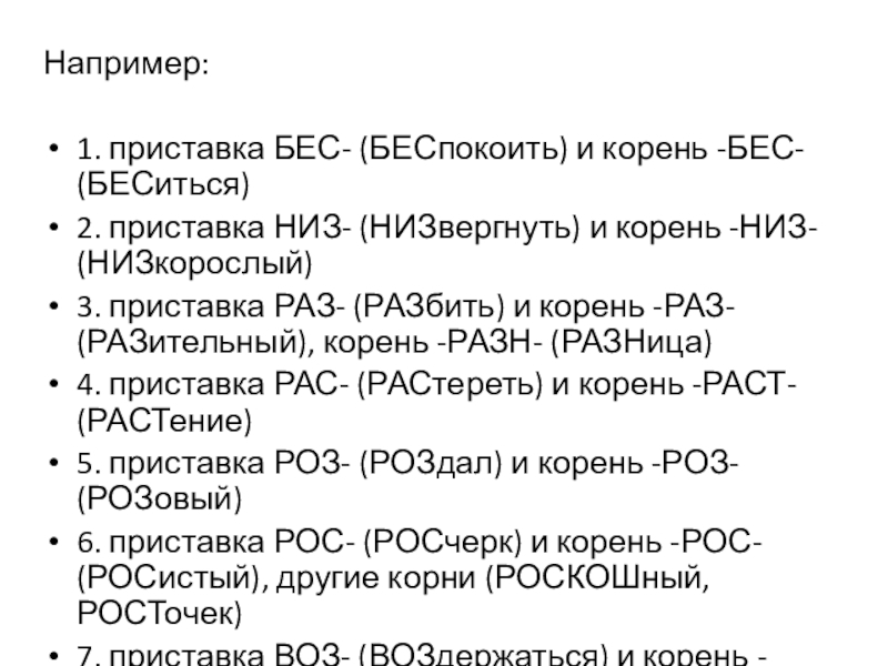 6. приставка РОС- (РОСчерк) и корень -РОС- (РОСистый), другие корни (РОСКОШный, РОСТочек)
