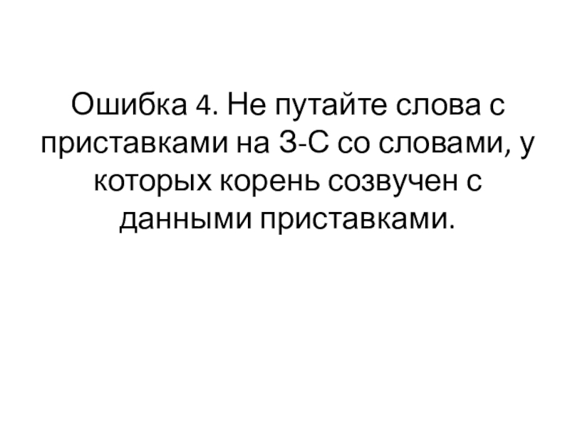 Слайд 11Ошибка 4. Не путайте слова с приставками на З-С со словами,