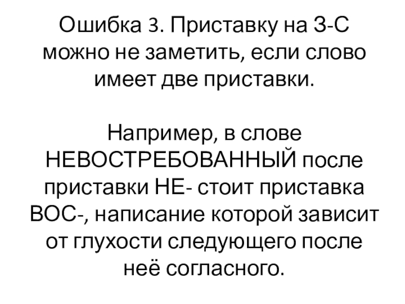 Слайд 10Ошибка 3. Приставку на З-С можно не заметить, если слово имеет