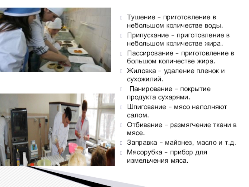 Слайд 10Тушение – приготовление в небольшом количестве воды.